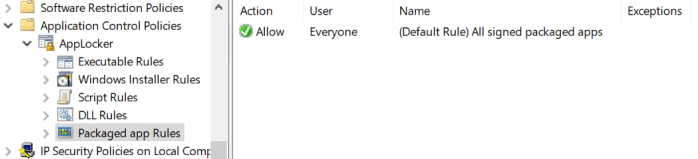 AppLocker Packaged app Rules