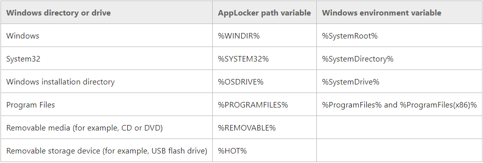 The complete AppLocker variable list can be found here: