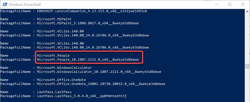 First I needed to figure out the full package name since the PLMDebug command needed it. Since I have previously worked a lot with both SCCM operating system deployment and AppLocker I knew that you can list out all the packages with the Get-AppxPackage cmdlet.